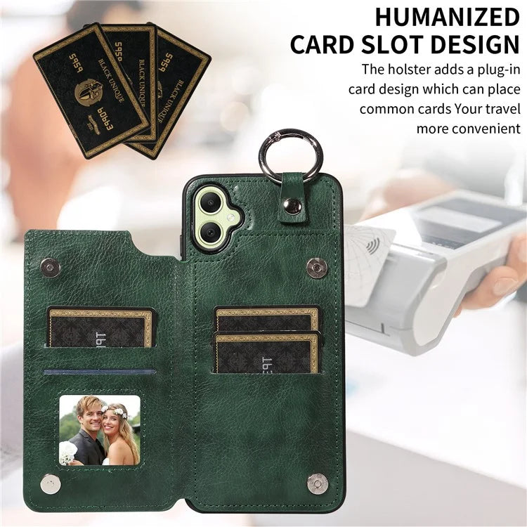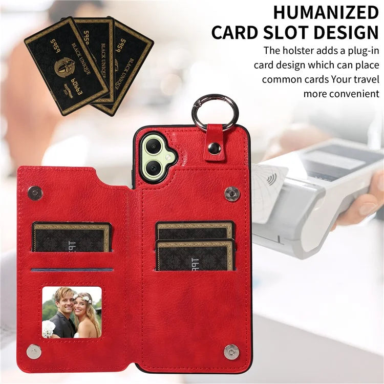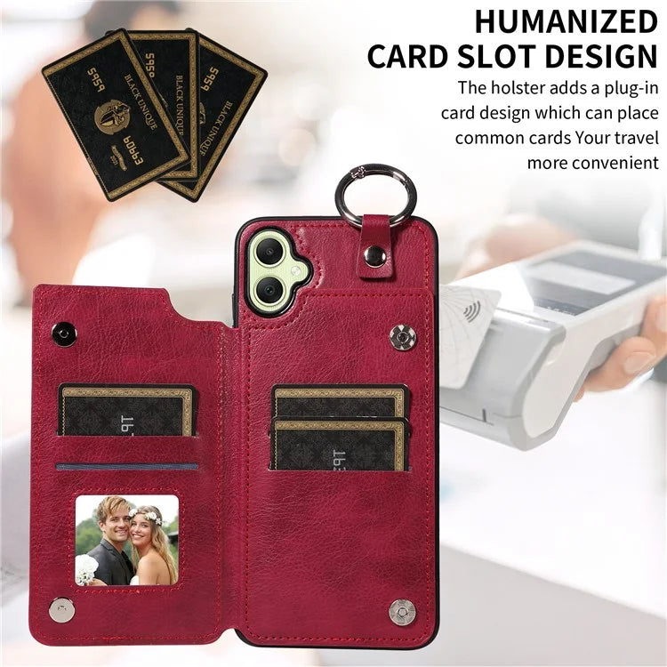 - Practical Card Slots: The case features multiple card slots and a photo ID slot. The magnetic closure ensures that your cards and cash are securely stored. Built-in eject pin and SIM card slot (not included)
