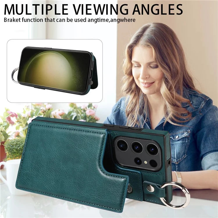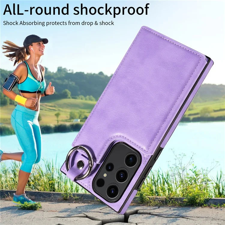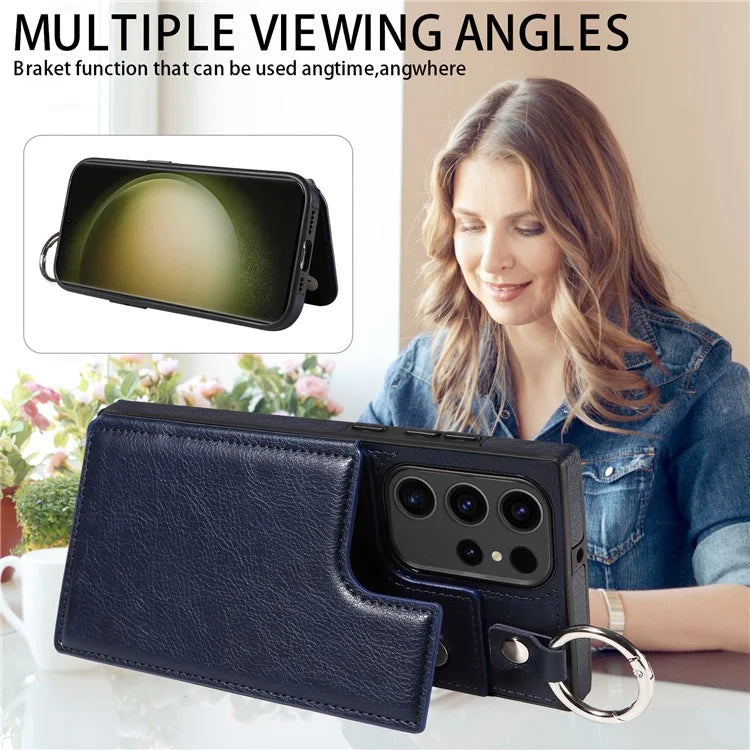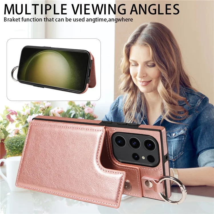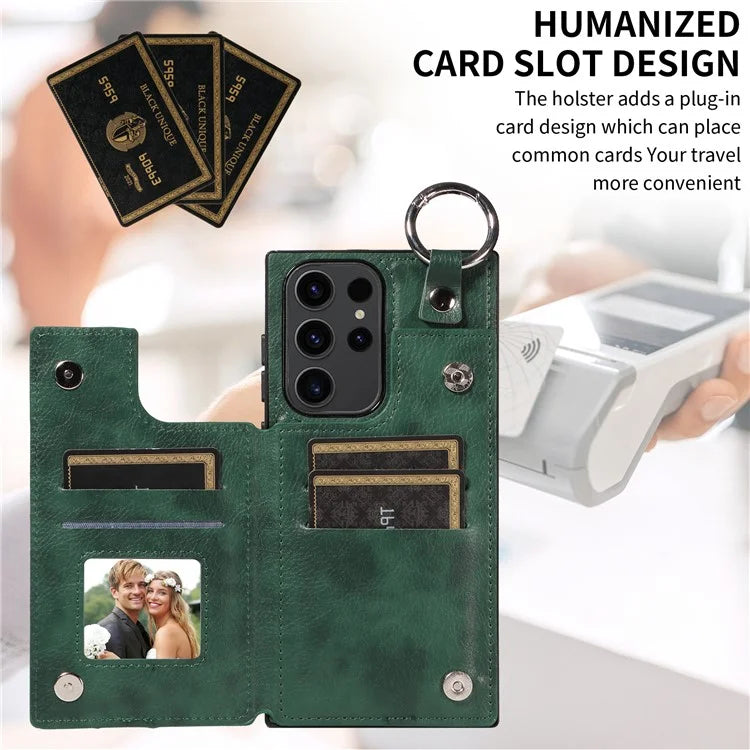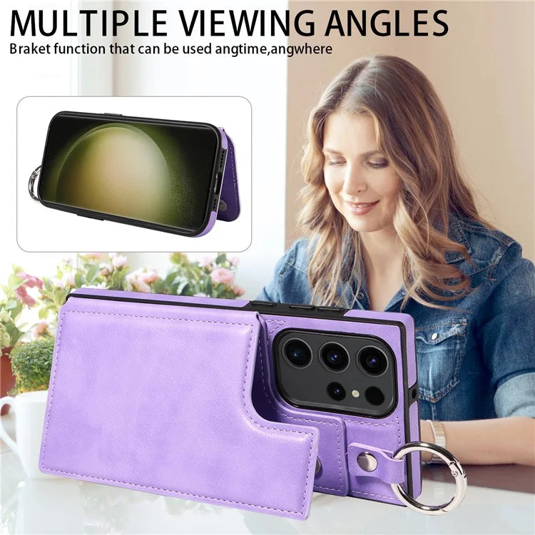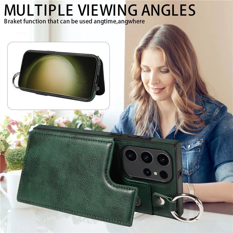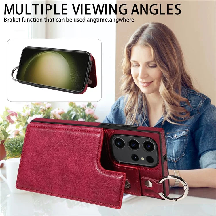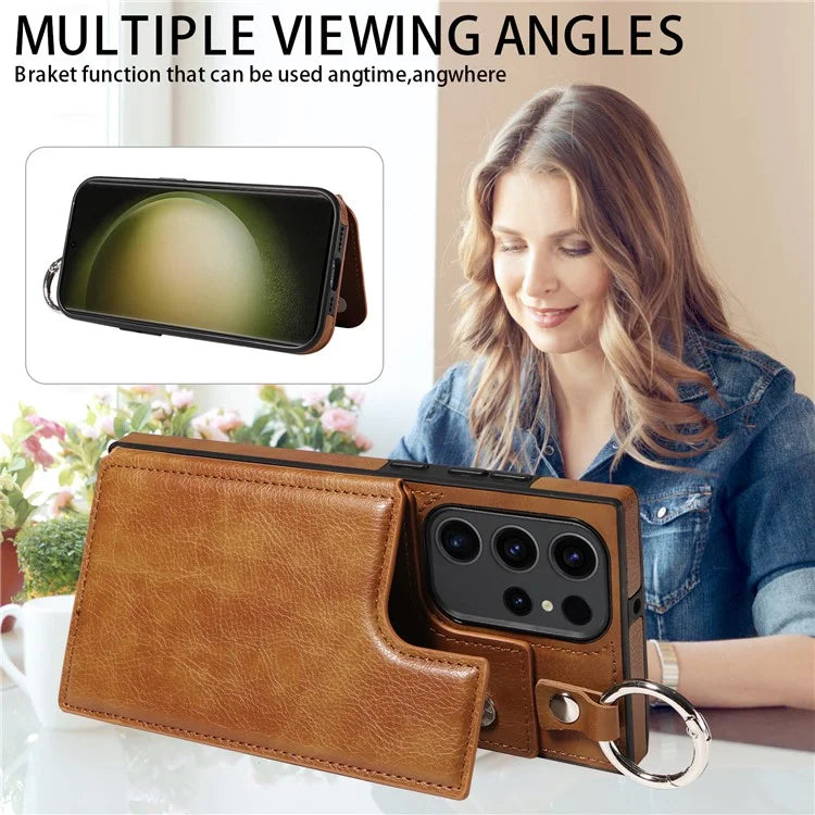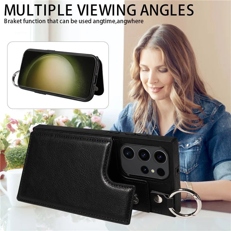 003 For Samsung Galaxy S23 Ultra Case Ring Buckle Card Holder Leather Phone Back Cover Litchi Texture