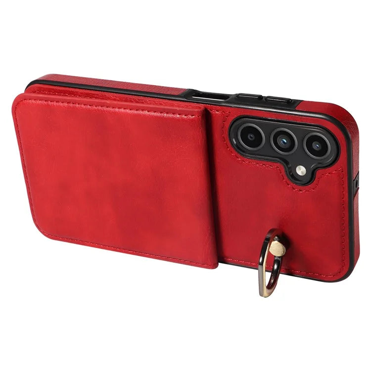 004 For Samsung Galaxy A15 5G Case Leather Litchi Texture Back Phone Cover Rotation Ring Holder