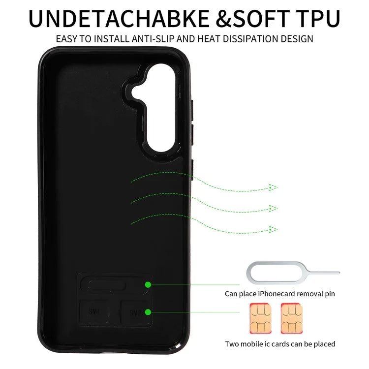 - Practical Card Slots: The case features 2 card slots and a photo frame with magnetic closure, allowing you to store your cards while keeping them easily accessible and securely. Built-in eject pin and SIM card slot (not included)