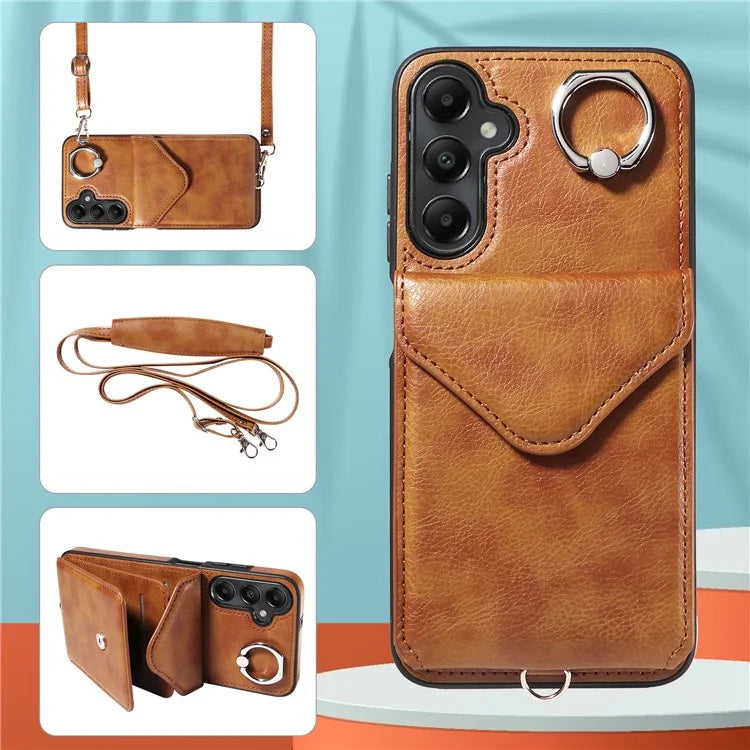 005 For Samsung Galaxy A05s 4G Crossbody Case PU Leather Back Cover Card Holder Ring Kickstand