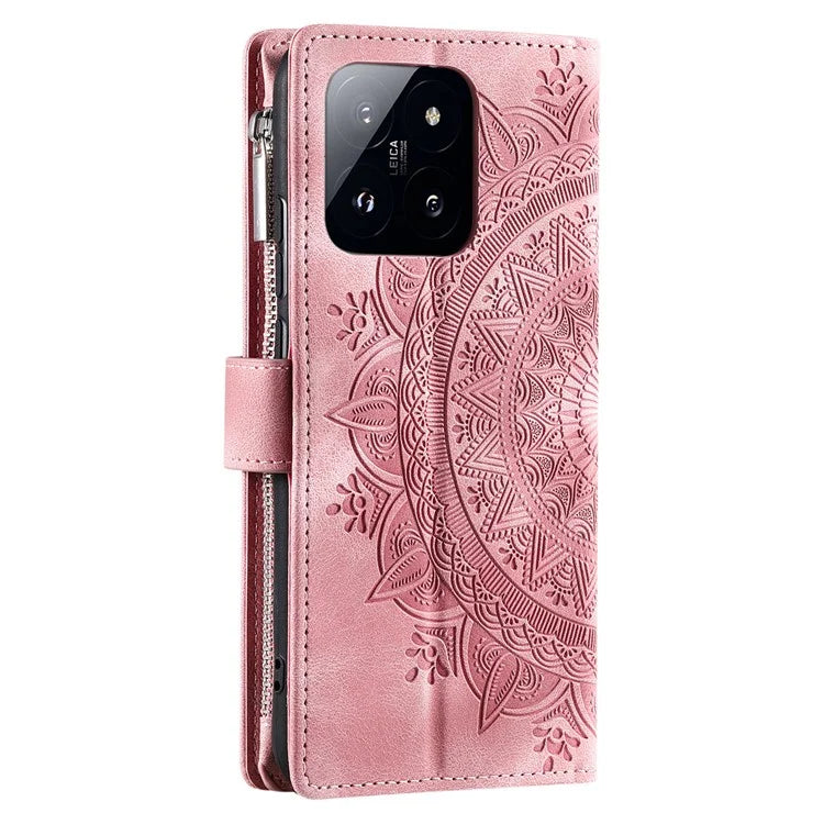 006 For Xiaomi 14 Case Slim-Fit Phone Shell Leather Wallet Imprinted Phone Cover with Strap