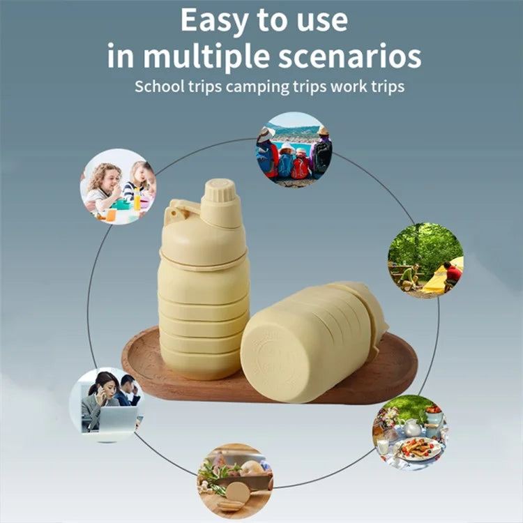 500ml Collapsible Water Bottle Outdoor Camping Leakproof Silicone+PP Bottle (No FDA, BPA Free)