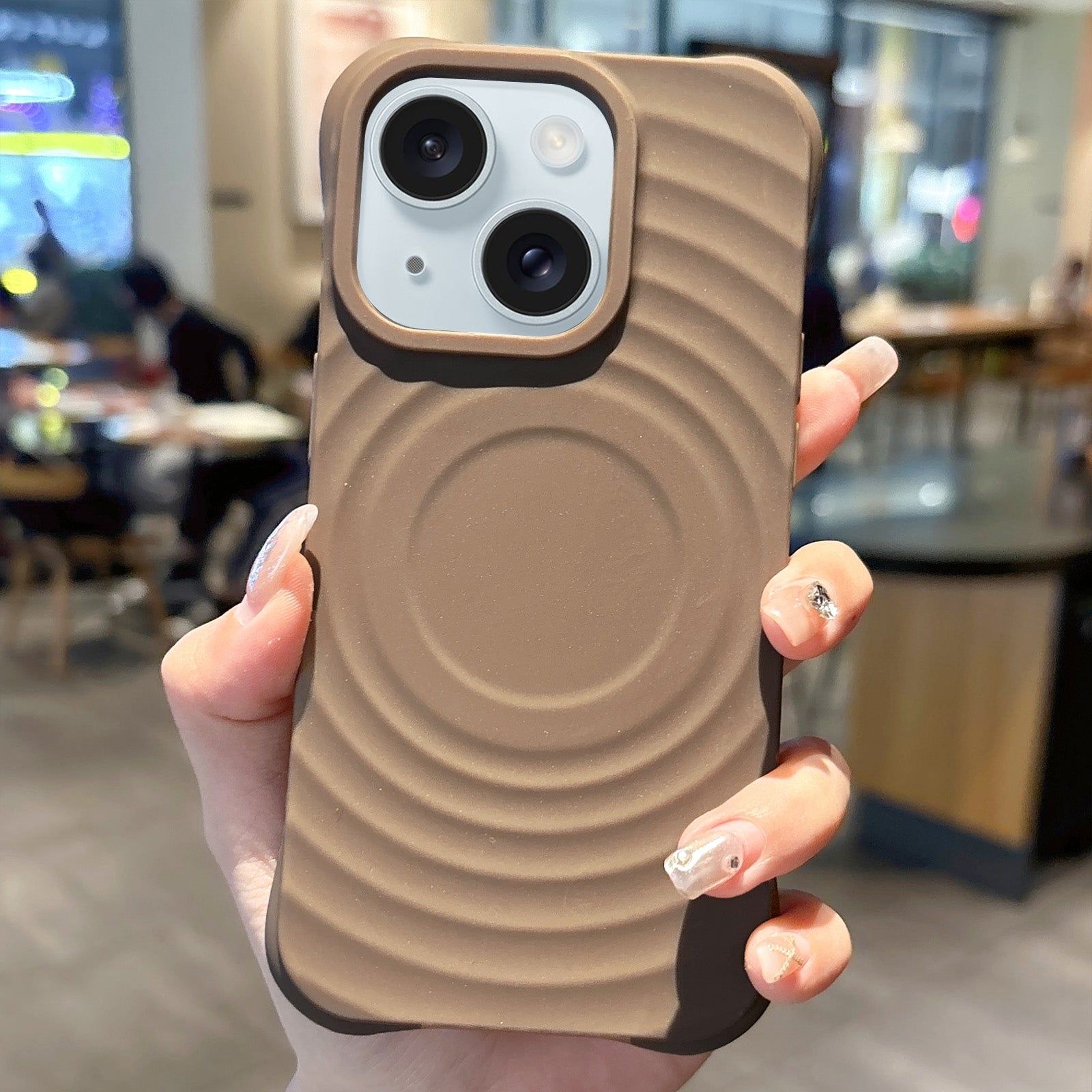 ELECTROPRIME For iPhone 15 MagSafe Magnetic Ring Texture TPU Phone Case(Khaki)