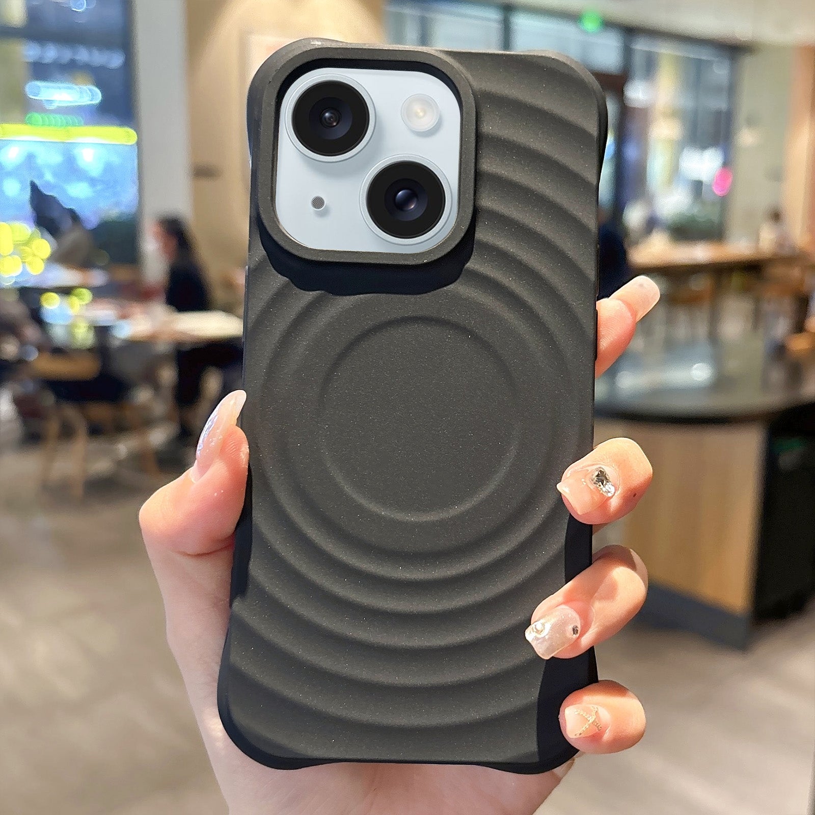 ELECTROPRIME For iPhone 15 MagSafe Magnetic Ring Texture TPU Phone Case(Black)