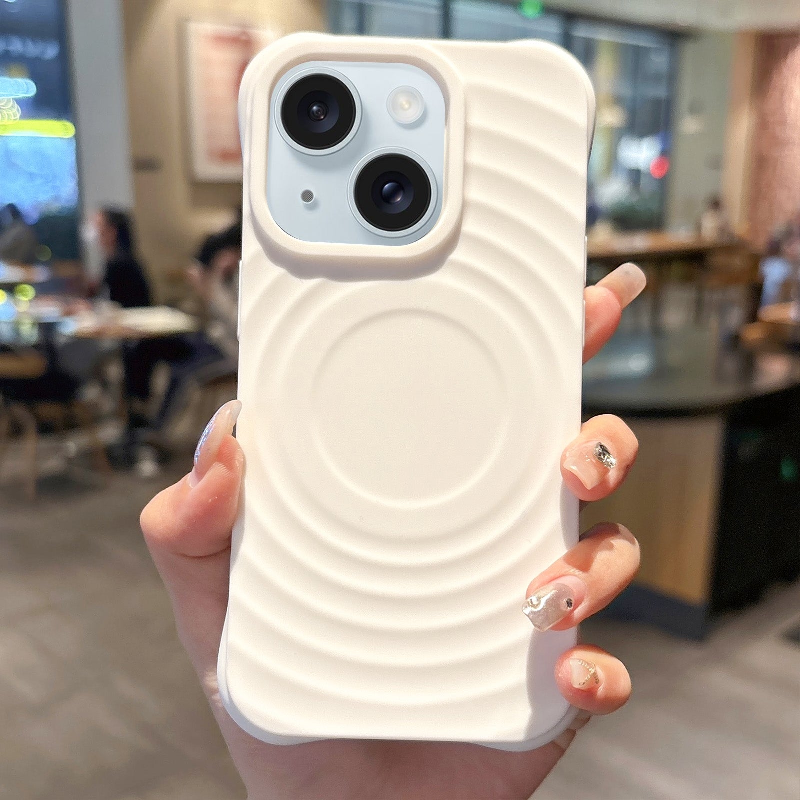 ELECTROPRIME For iPhone 15 MagSafe Magnetic Ring Texture TPU Phone Case(White)
