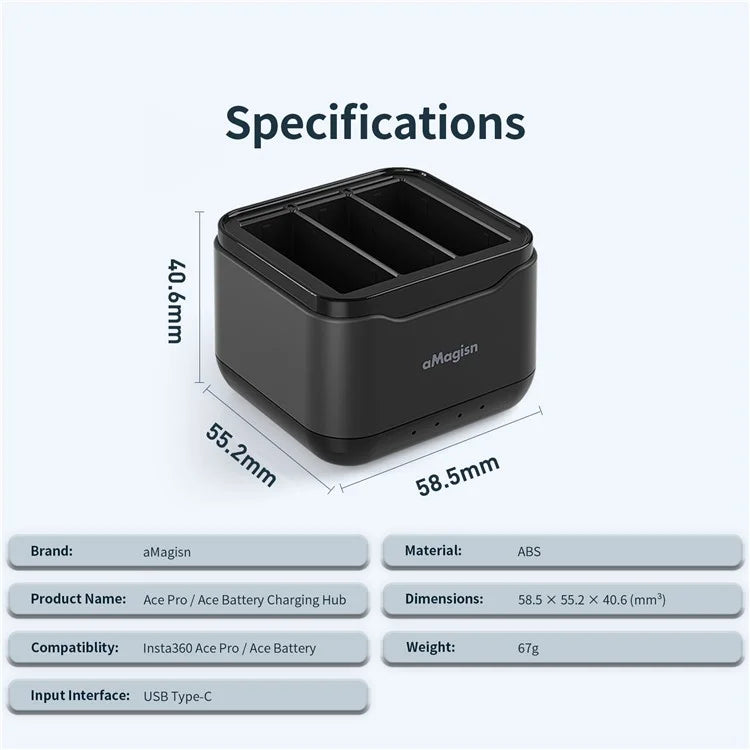 AMAGISN Charging Dock for Insta360 Ace / Ace Pro Battery Charger (Batteries Not Included)