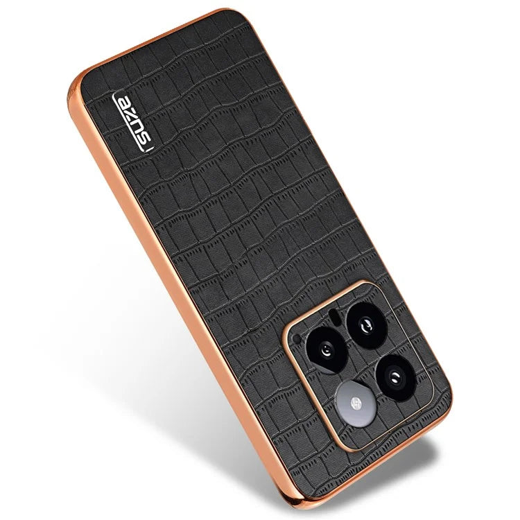 AZNS For Xiaomi 14 Case PU Leather Classic Crocodile Pattern Back Cover