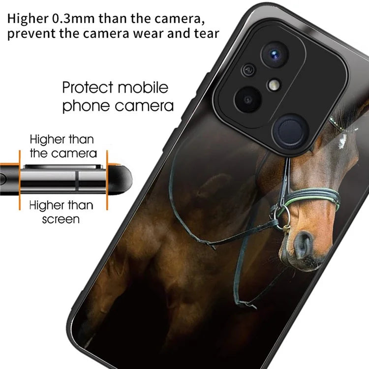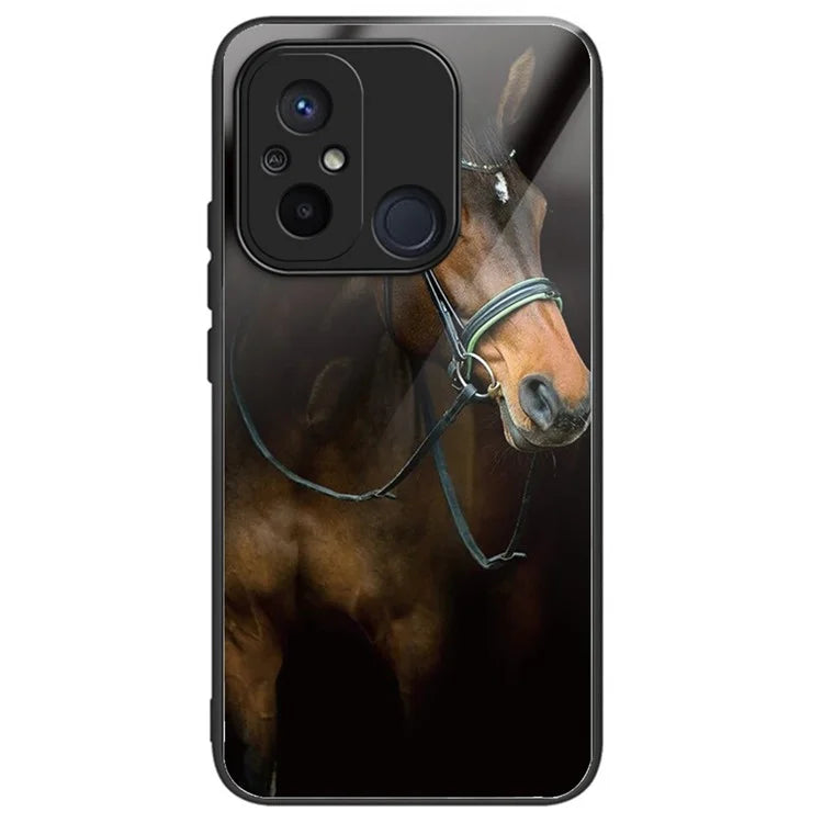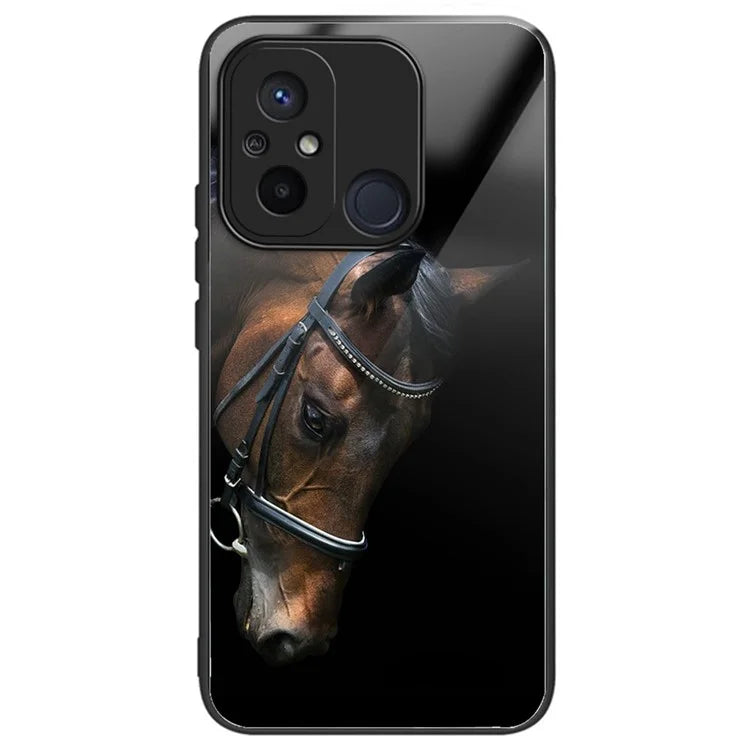 Back Case for Xiaomi Redmi 12C 4G Shell TPU+Tempered Glass Pattern Printing Cover