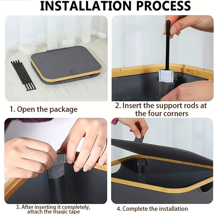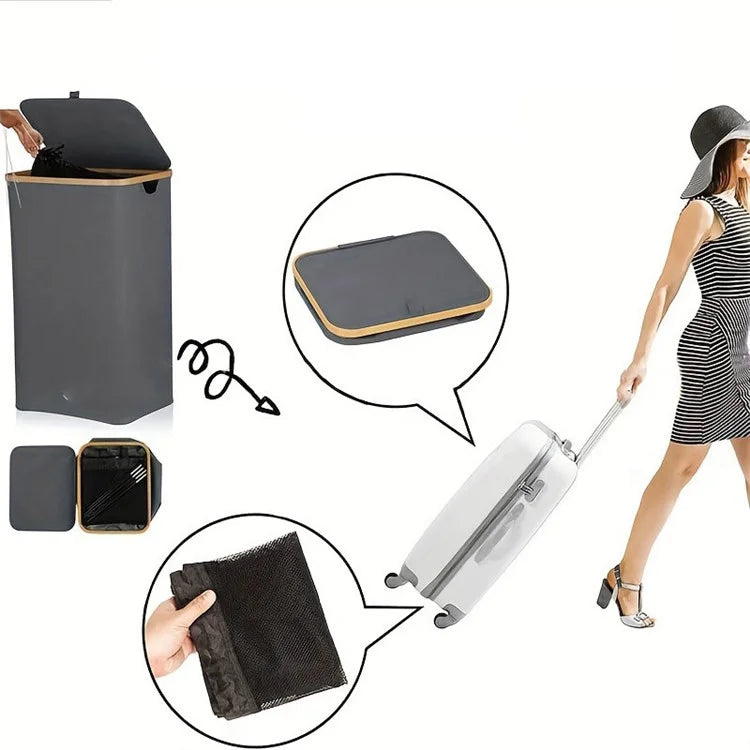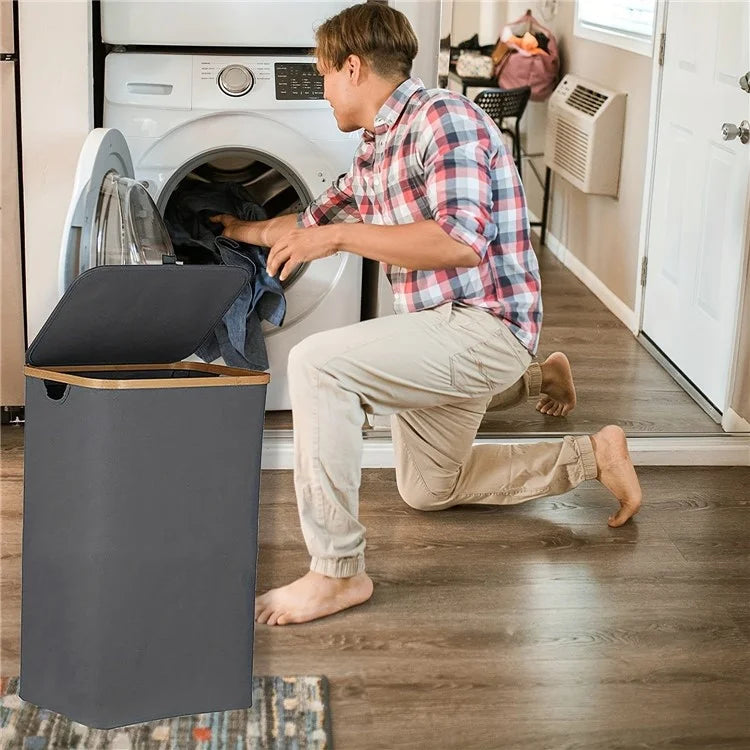 Bamboo + Oxford Cloth Collapsible Clothing Storage Laundry Basket with Lid