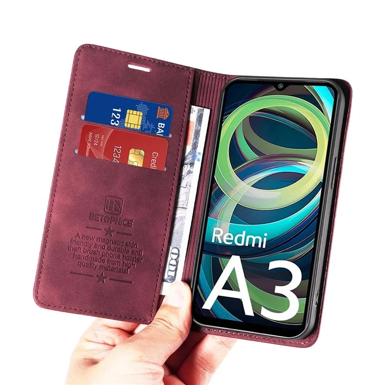 BETOPNICE 003 For Xiaomi Redmi A3 / Poco C61 4G Case RFID Blocking Wallet Leather+TPU Phone Protector