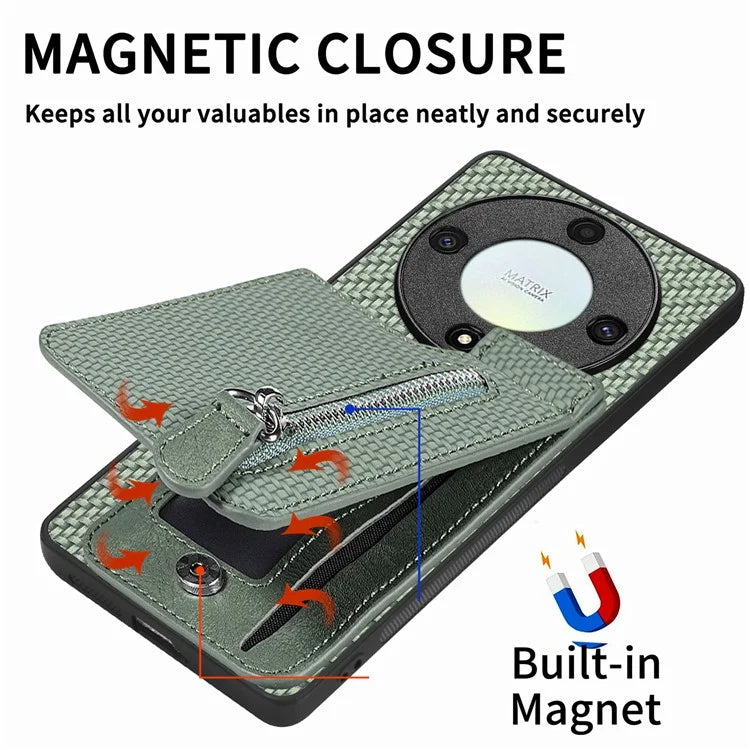 C1-03 For Honor X40 5G / X9a 5G / Magic5 Lite 5G Case Zipper Pocket Carbon Fiber Back Phone Cover