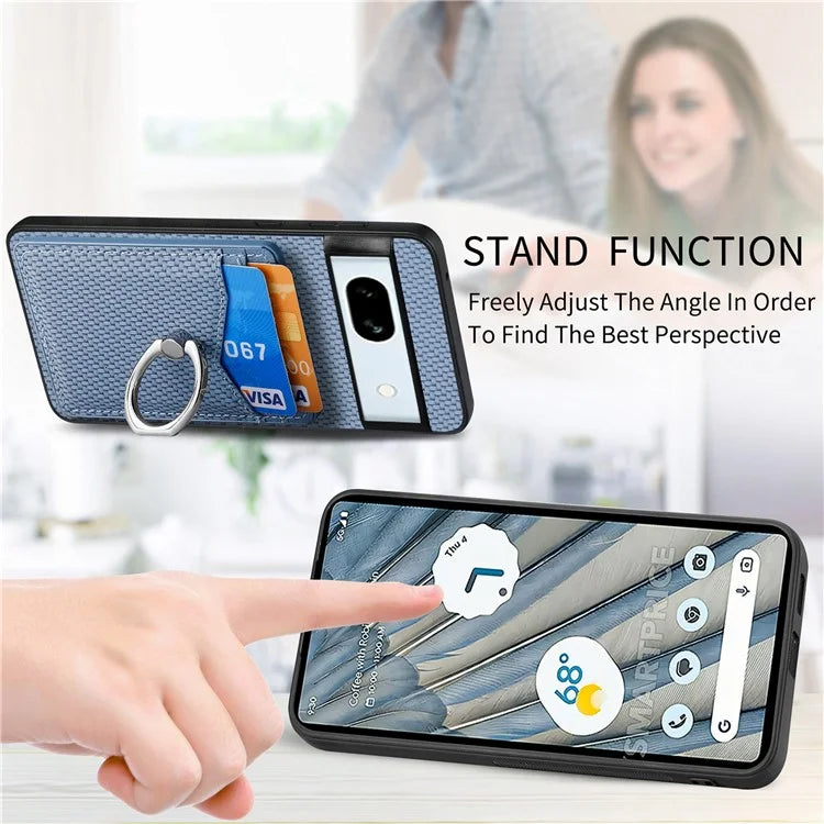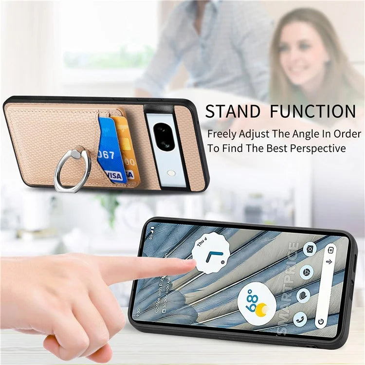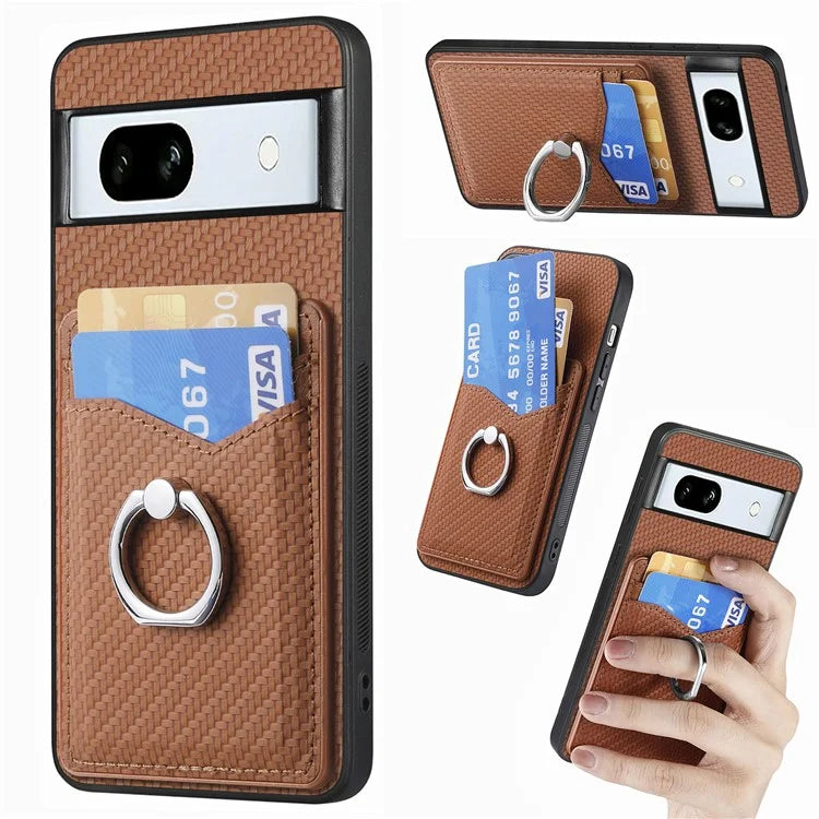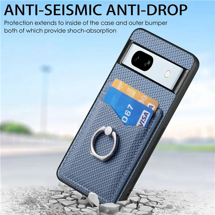 C1-8 For Google Pixel 7a Case Card Holder PU Leather+PC+TPU Carbon Fiber Texture Phone Cover