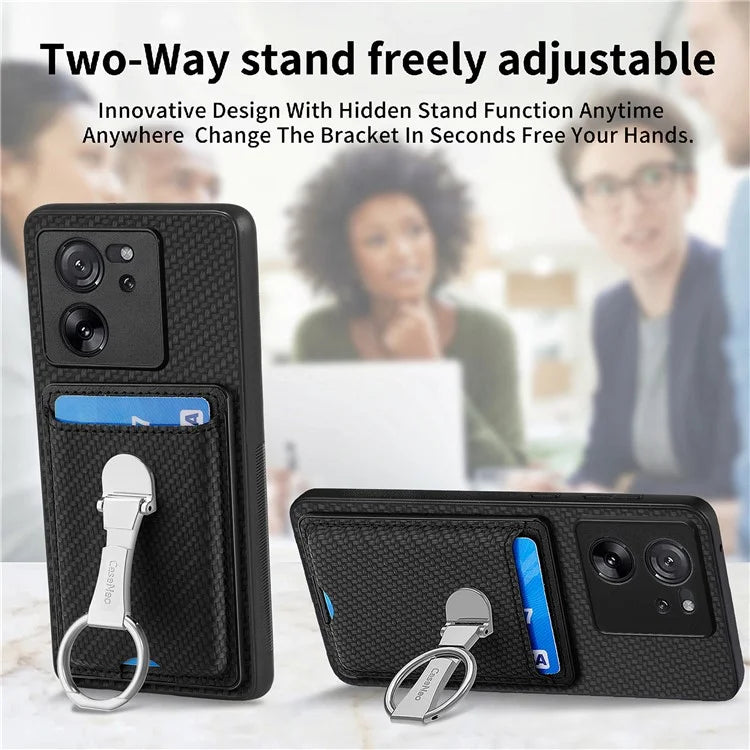 C1-9 for Xiaomi 13T / 13T Pro / Redmi K60 Ultra Case Carbon Fiber Texture Card Slots Phone Cover