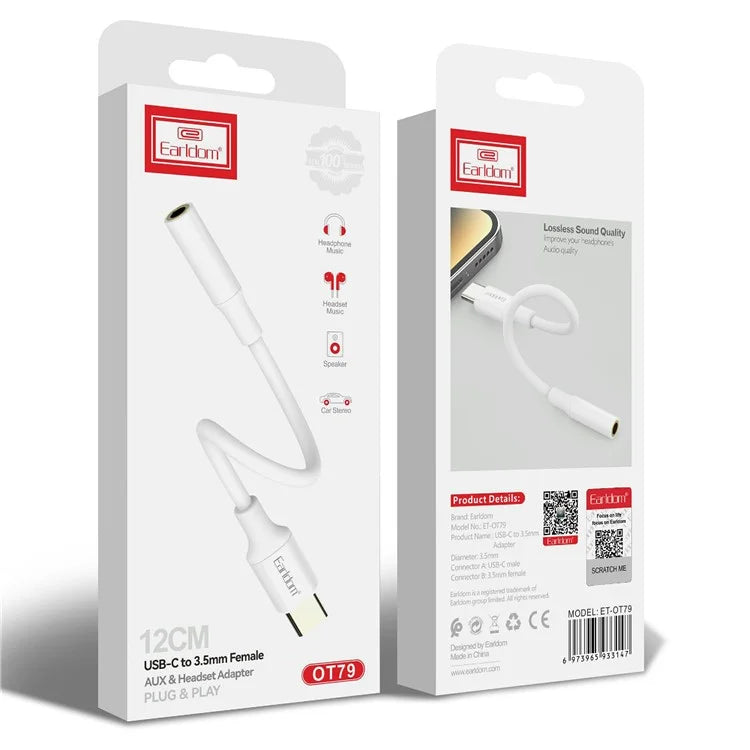 EARLDOM OT79 Type-C Male to 3.5mm Female Headphone Connection Adapter