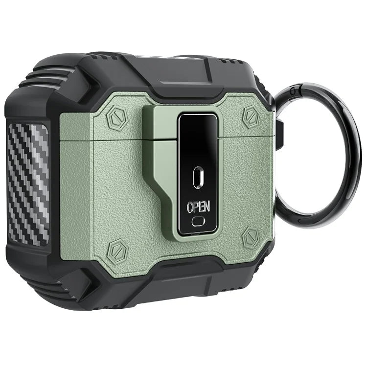 For AirPods 4 Charging Case Cover Button Lock TPU+PC Bluetooth Earbuds Protector with Metal Buckle