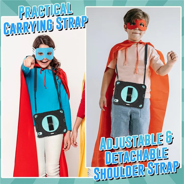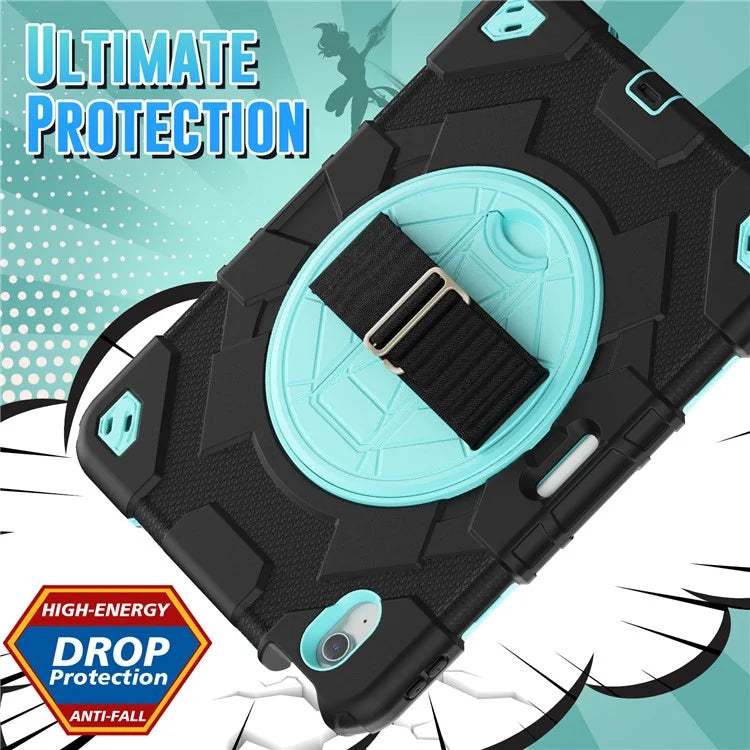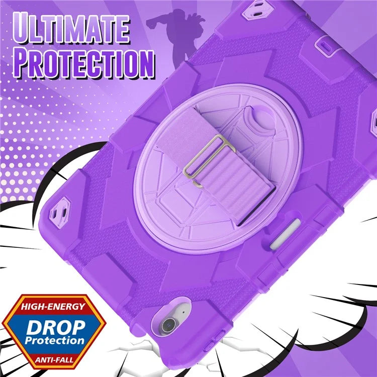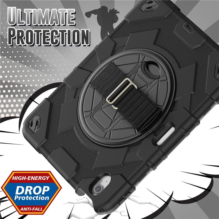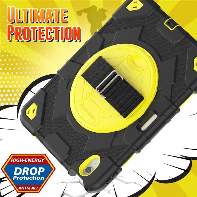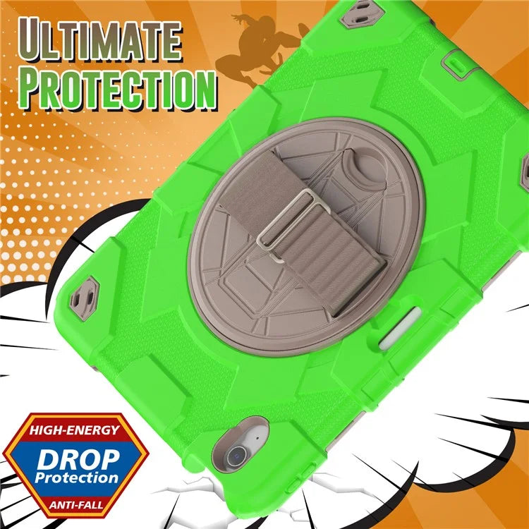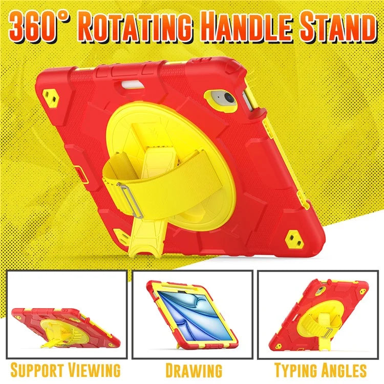 For iPad Air 11 (2024) Case Kickstand Hand Strap PC+Silicone Tablet Cover with Shoulder Strap