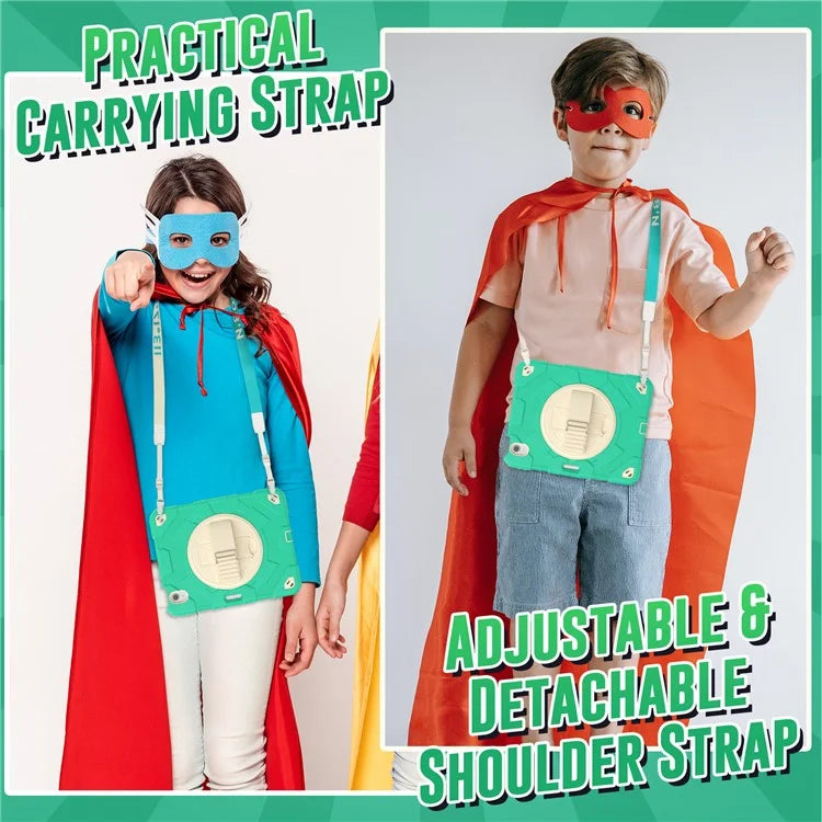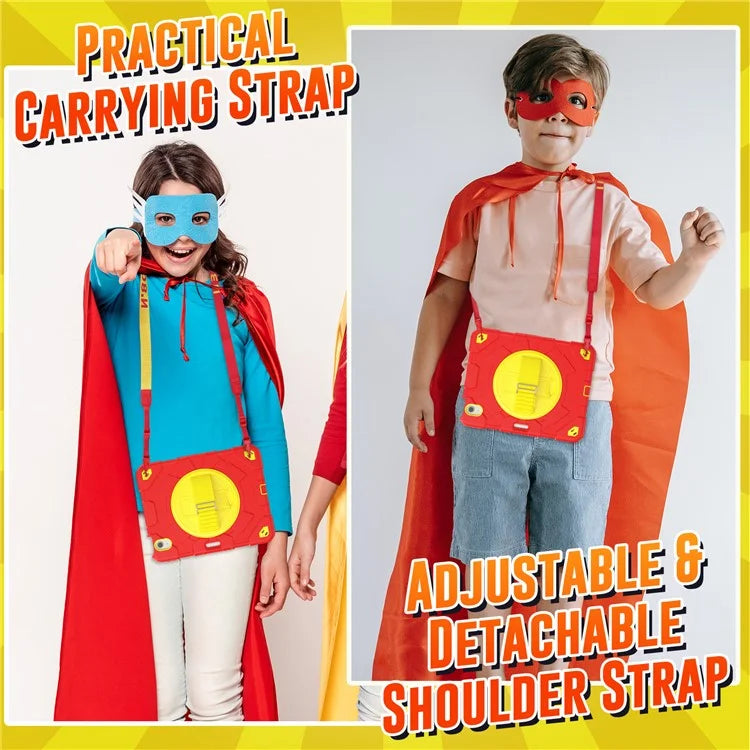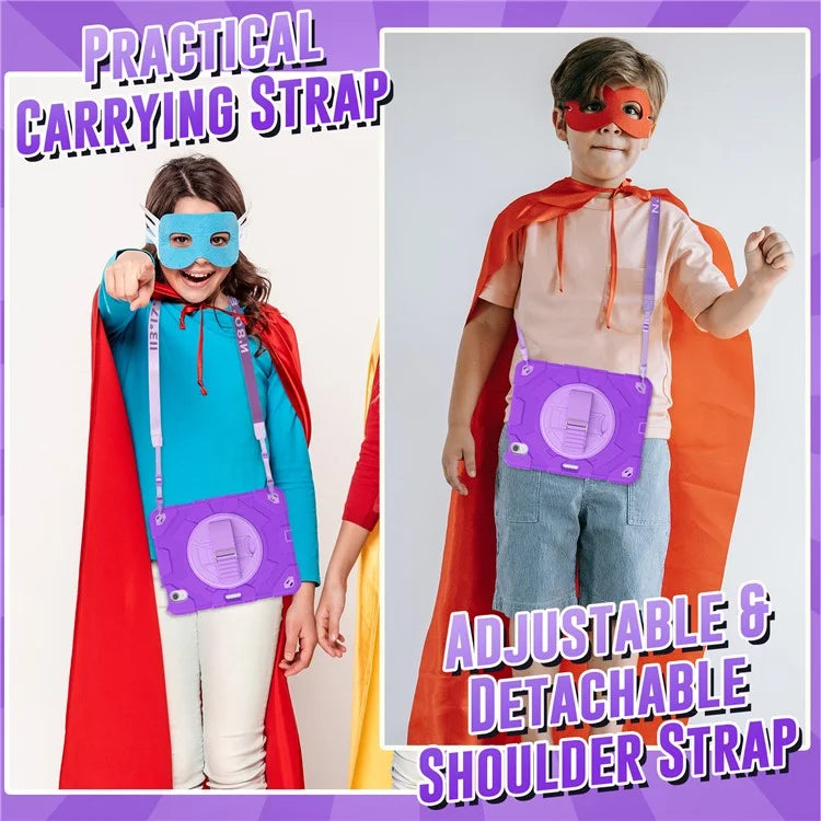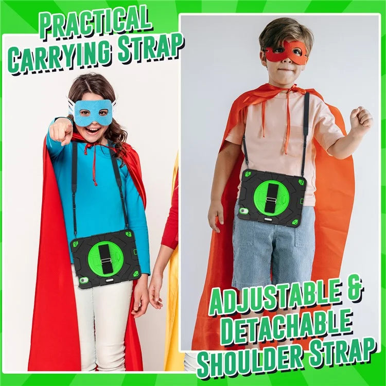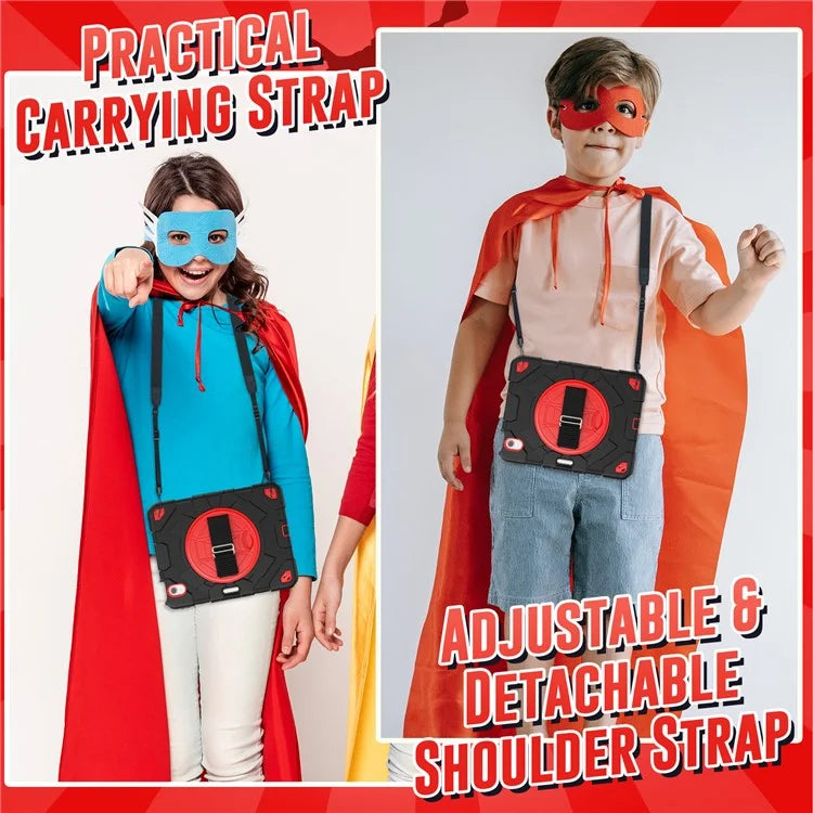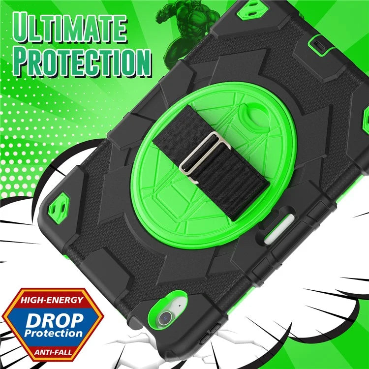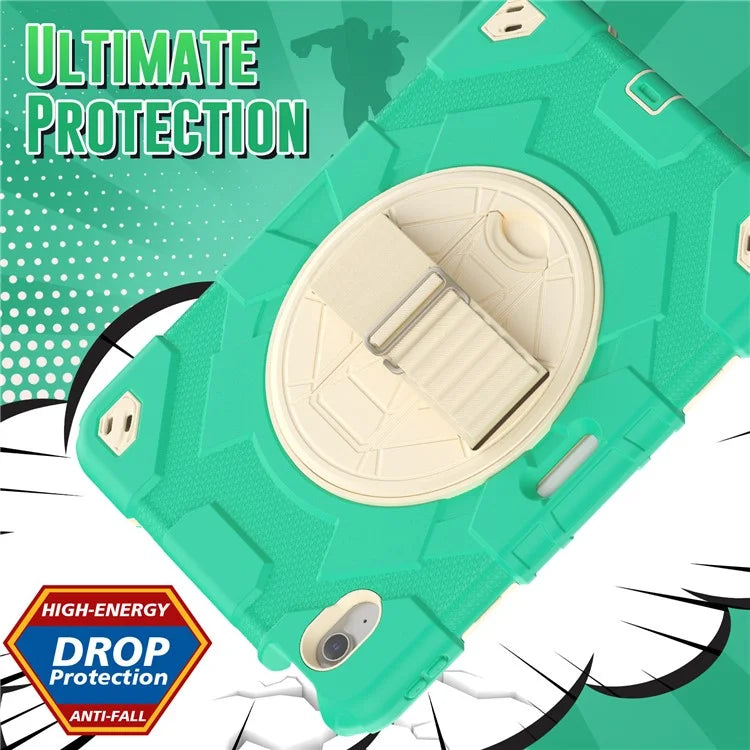 For iPad Air 11 (2024) Case Kickstand Hand Strap PC+Silicone Tablet Cover with Shoulder Strap