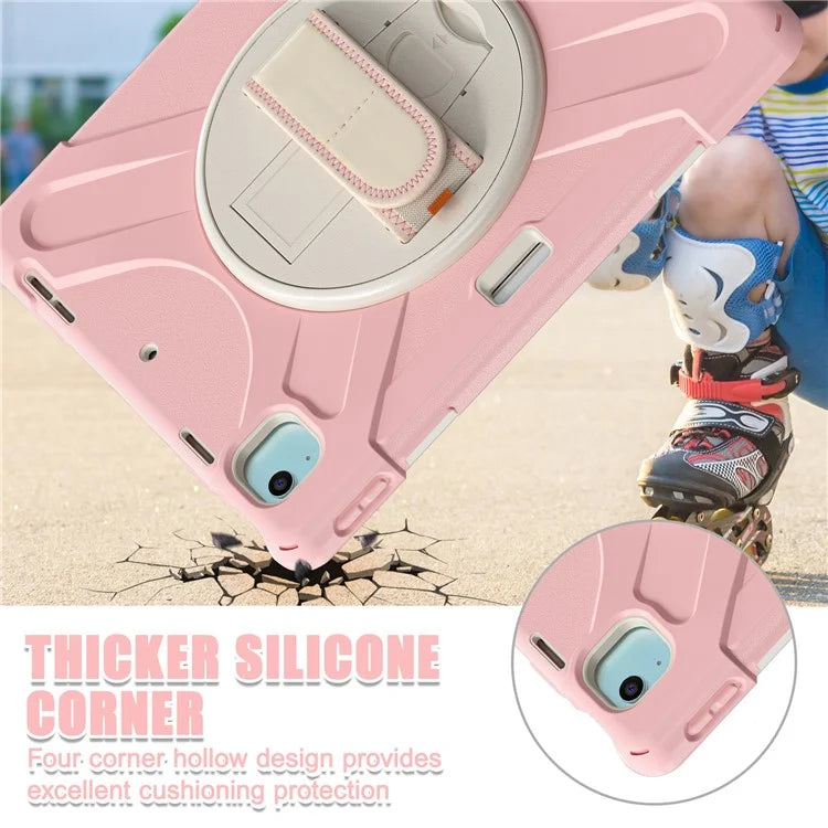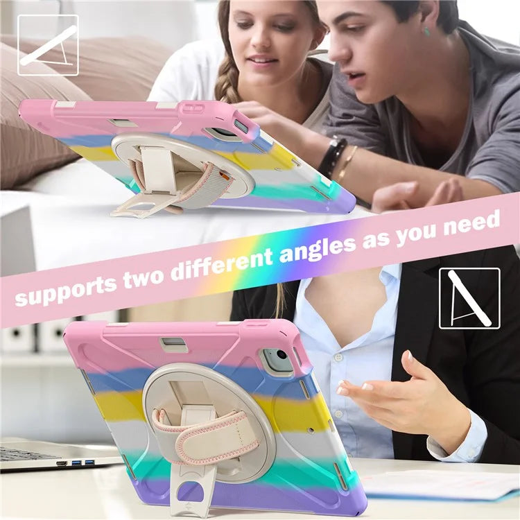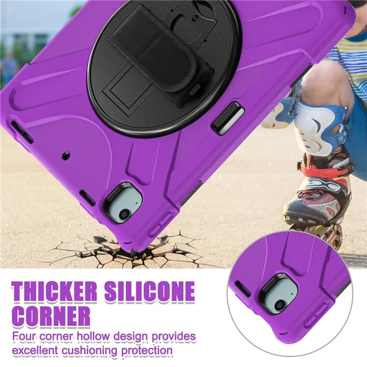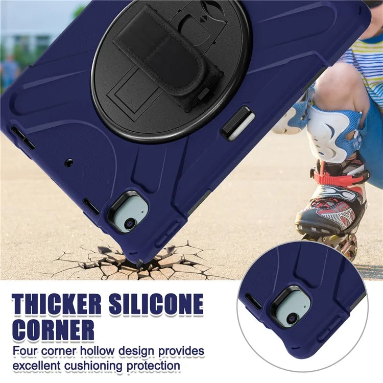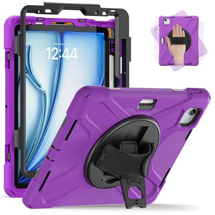 For iPad Air 11 (2024) Case Rotary Hand Strap Kickstand TPU+PC+Silicone Tablet Cover