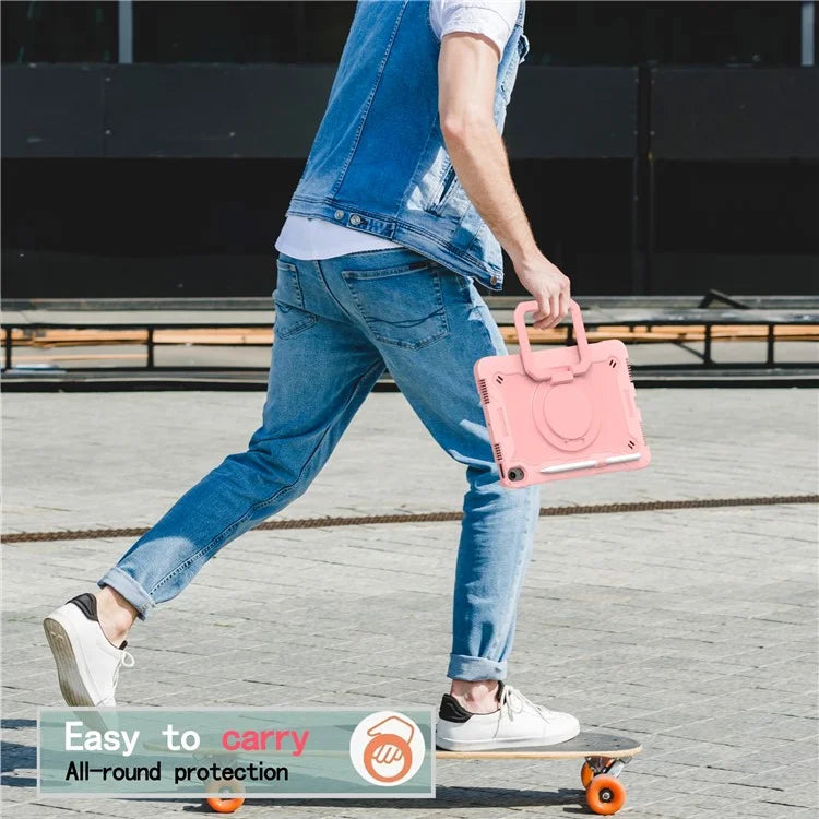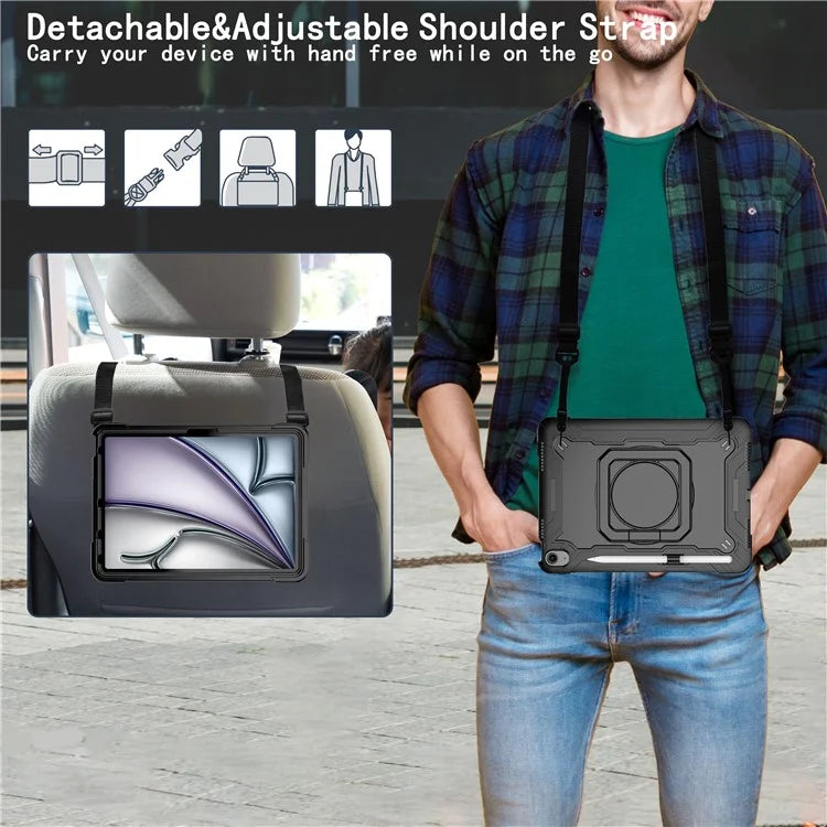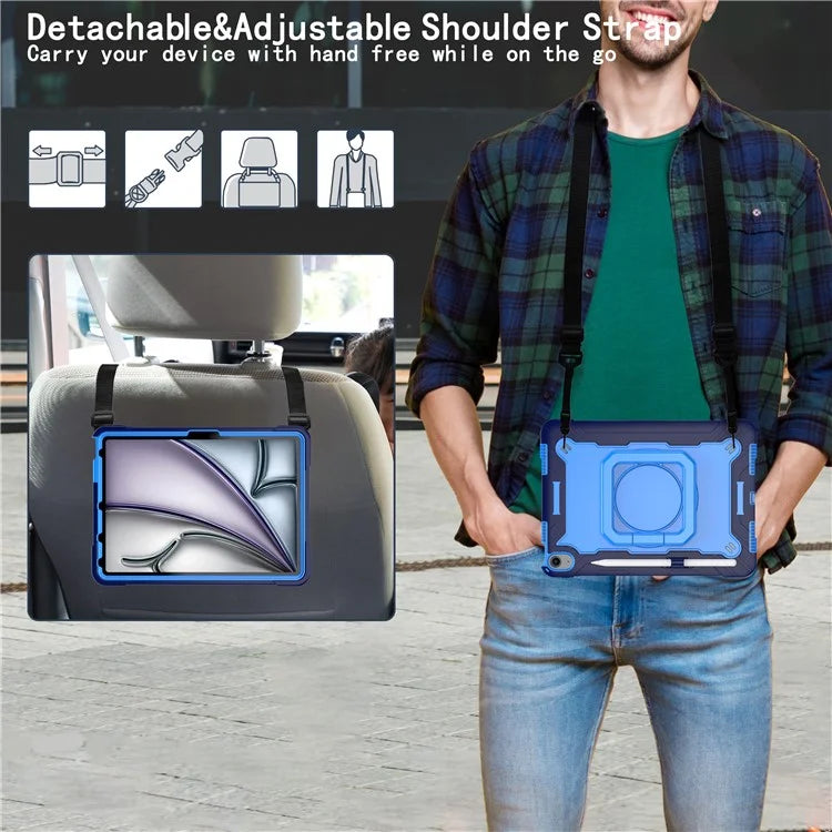 For iPad Air 11 (2024) Case with Shoulder Strap PC+Silicone Hand Grip Kickstand Tablet Cover