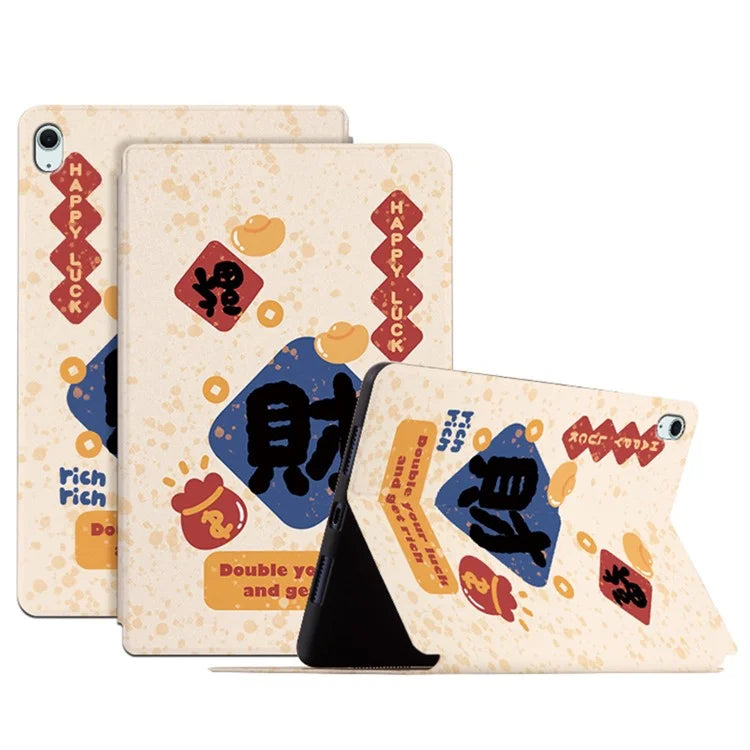 For iPad Air 11 (2024) / iPad Air (2022) / (2020) Case Joyous Pattern Print Leather Tablet Cover Luck