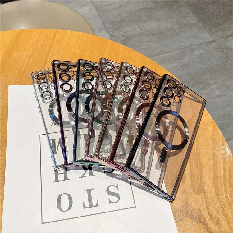 For Samsung Galaxy S22 Ultra 5G Case Electroplated TPU Magnetic Phone Cover with Lens Film