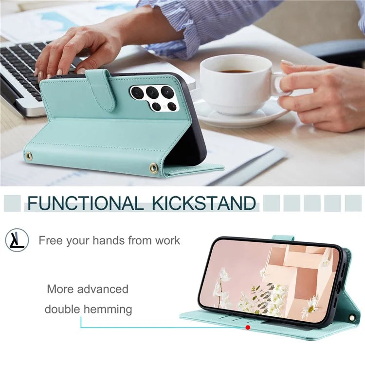 For Samsung Galaxy S23 Ultra Case Wallet Phone Cover with Shoulder Strap and Hand Strap
