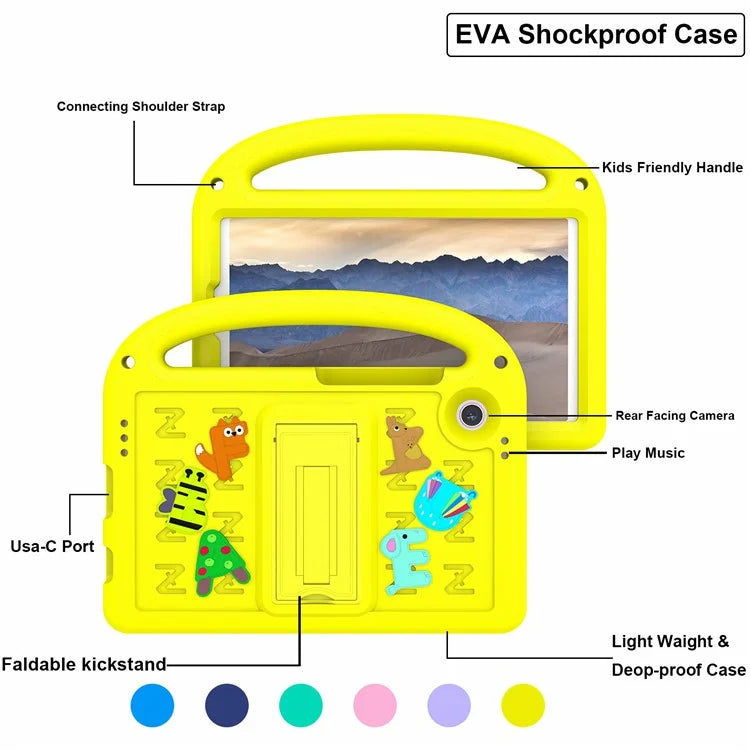For Samsung Galaxy Tab A9 Case Cartoon Design Kickstand EVA+PC Tablet Cover with Strap
