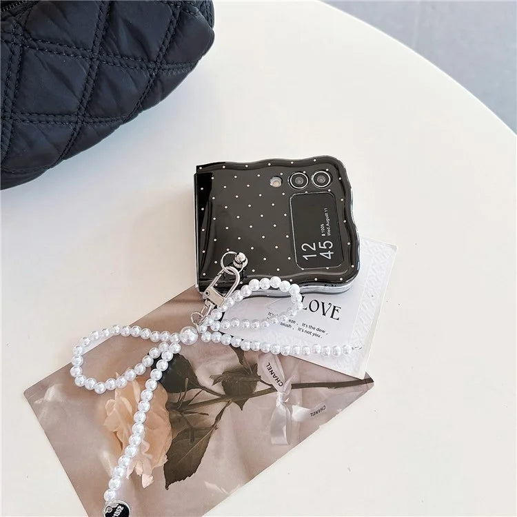 For Samsung Galaxy Z Flip4 5G TPU Case Pattern Phone Cover with Pearls Bowknot Pendant