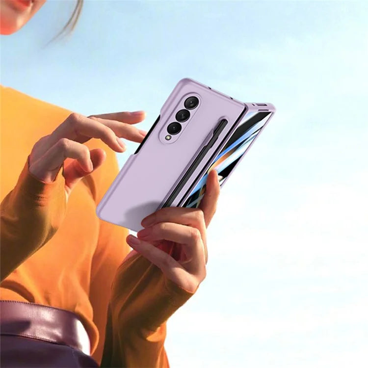 For Samsung Galaxy Z Fold4 5G Phone Case PC Protective Cover with Tempered Glass Film / Stylus Pen