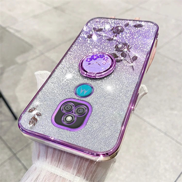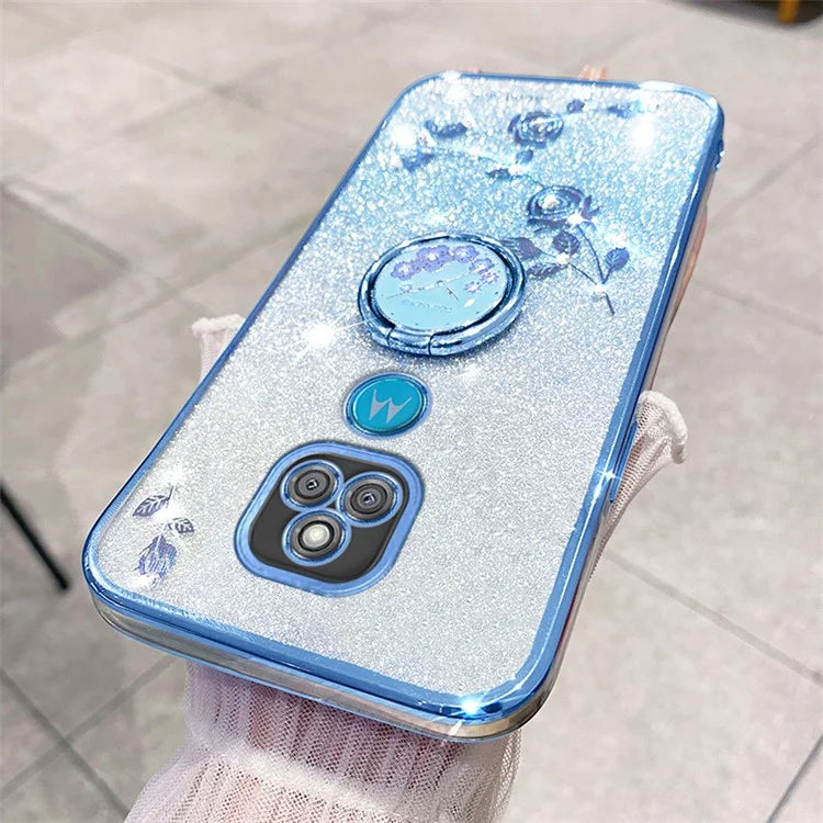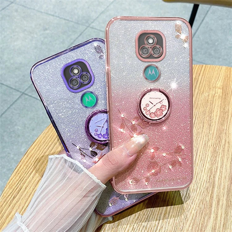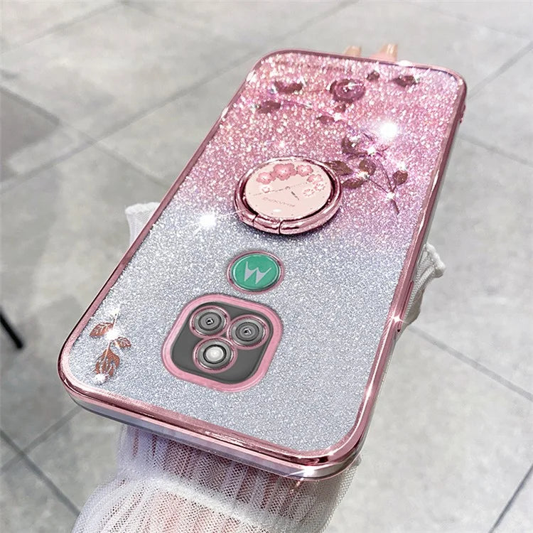 KADEM For Motorola Moto E7 Plus Case Flower Pattern TPU Phone Cover with Ring Kickstand