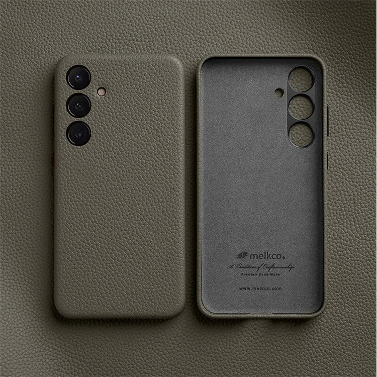 MELKCO For Samsung Galaxy S24 Cell Phone Cases Anti-scratch Genuine Cow Leather+PC Cover