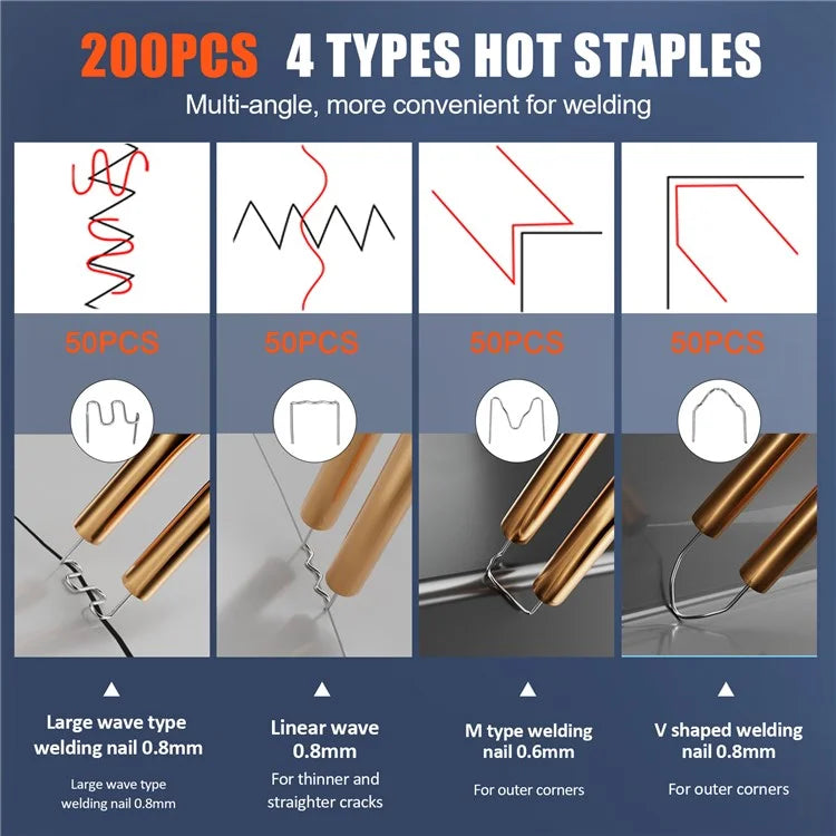 - The plastic welding gun must be completely cooled before storage. When repairing, choose the correct welding nail according to the crack.