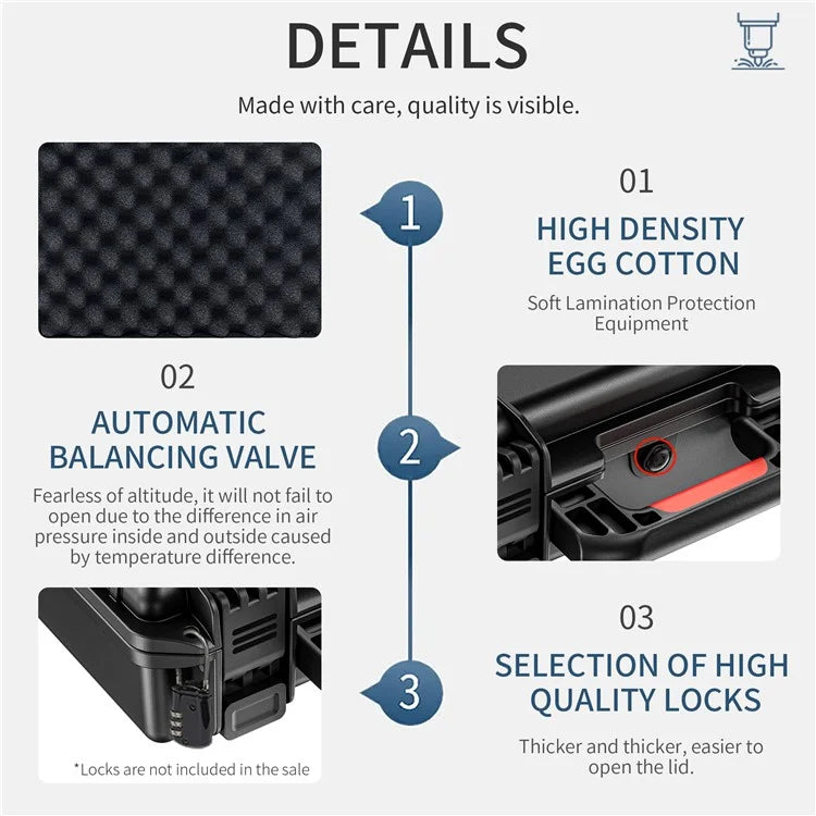 - Strong sealing: The outer box has a valve design to ensure the intact of internal space, with IP67 waterproof rating, waterproof and dustproof, to ensure that your product is dry and clean