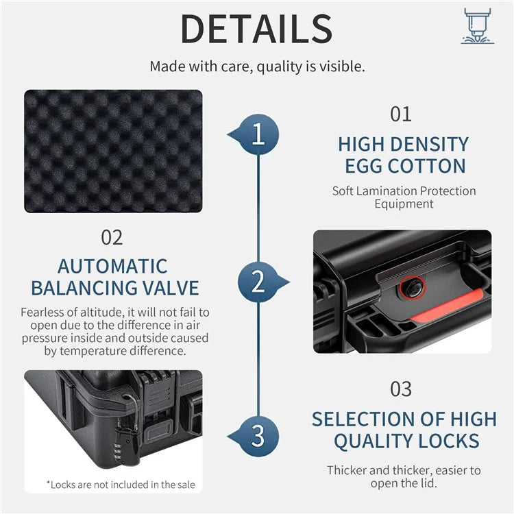 - Strong sealing: The outer box has a valve design to ensure the internal space intact, with IP67 rating, waterproof and dustproof, to ensure that your product is dry and clean