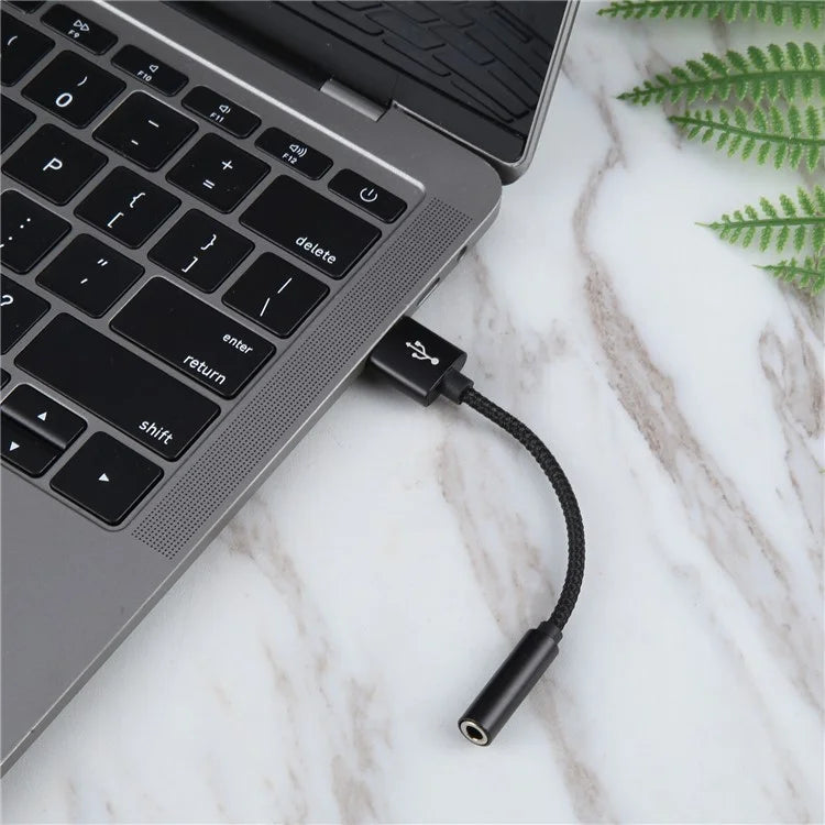 USB Male to 3.5mm Female Audio Adapter Nylon Braided Cord Stereo Sound AUX Adapter